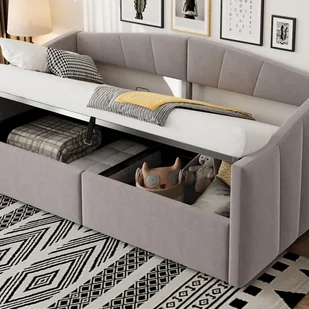 Ta pikowana sofa-łóżko łączy funkcje łóżka i sofy, z dużą przestrzenią do przechowywania pod spodem. Oszczędność miejsca gwarantowana, łatwo wpasowuje się w sypialnię lub salon.
