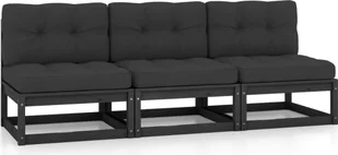 Uwaga: Aby przedłużyć żywotność mebli ogrodowych, zalecamy zabezpieczenie ich wodoodpornym pokrowcem. Kolor: czarnyKolor poduszek: antracytMateriał: Lite drewno sosnowe, tkanina (100% poliester)Wymiary sofy środkowej (każda): 70 x 70 x 67 cm (szer. x gł. x wys.)Wymiary poduszki siedziska: