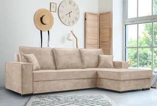 Ważne cechy produktu: Wymiary: 265x165x90 cm Funkcja spania: 210x140 cm Sprężyny: Falista 1 schowek na pościel Nośność: do 250 kg Wysokiej jakości tapicerka wykonana z tkaniny PALLADIUM Tkanina PALLADIUM to miękki, wytrzymały welur, który jest przyjemny w dotyku i w żywych kolorach.