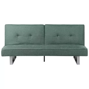 Elegancka sofa w kolorze zielonym. Elegancka sofa w kolorze zielonym w łatwej do utrzymania tkaninie tapicerskiej, na stabilnych metalowych nogach. Grubo wyściełane siedzisko zaprasza do siedzenia bądź leżenia w komfortowych warunkach. Sofa dzięki swoim wymiarom zapewnia wystarczająco dużo miejsca do siedzenia dla 3 osób. W nocy natomiast może stać się wygodnym miejscem na nocleg dla dwóch osób.