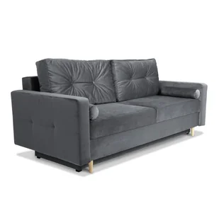 Rozkładana srebrna sofa Stella z poduszkami w kształcie wałka, z pojemnikiem na pościel wyposażona w funkcję spania Elegancką sofę Stella w kolorze srebrnym dopasujesz do każdego stylu i wnętrza. Stylowa kanapa z miękkim oparciem w formie pikowanych poduszek doskonale sprawdzi się jako siedzisko w salonie. Dodatkowo dzięki wyposażeniu w funkcję spania oraz pojemnik na pościel sofę wykorzystasz jako wygodne łóżko w swojej sypialni lub pokoju gościnnym. WYMIARY: Szerokość: 215 cm Wysokość: