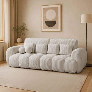 Sofa z funkcją spania COTONN kremowa Sofa Cotonn to doskonały wybór dla osób, które poszukują połączenia nowoczesnego stylu z praktycznymi rozwiązaniami. Jej prosta, a jednocześnie gustowna sylwetka świetnie sprawdzi się zarówno w aranżacjach minimalistycznych, jak i w ciepłych, domowych wnętrzach. Dlaczego warto ją wybrać? - Komfort każdego dnia - szerokie siedzisko (190 cm) wypełnione sprężyną falistą i pianką HR3030 gwarantuje wygodę i odpowiednie podparcie. To idealne miejsce zarówno na relaks, jak i na codzienny sen.