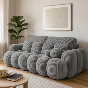 - Praktyczne dodatki - dwie poduszki oparciowe i sześć dekoracyjnych akcentują styl sofy, jednocześnie podnosząc jej wygodę.