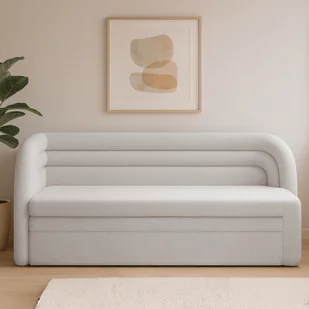 Sofa z funkcją spania FABILLO biała lewostronna Sofa Fabillo to mebel, który od pierwszego spojrzenia wyróżnia się subtelnymi zaokrągleniami i miękkimi liniami. Jej kształt harmonijnie wpisuje się w nowoczesne, minimalistyczne oraz japandi wnętrza. To połączenie estetyki i funkcjonalności, które sprawia, że Fabillo staje się naturalnym centrum każdego pomieszczenia. Dlaczego warto ją wybrać? - Fabillo została zaprojektowana tak, by zapewniać wygodę nawet trzem osobom jednocześnie. Obszerne siedzisko wypełnione pianką T2540 oraz oparcie z miękkiej pianki i włókniny puszystej gwarantują przyjemny relaks każdego dnia.