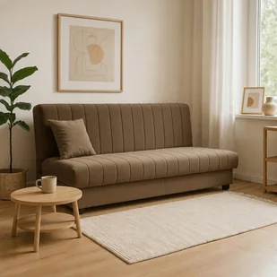Wersalka Sigma beżowa to elegancki i funkcjonalny mebel 3w1: sofa, łóżko i schowek. Posiada system klik-klak, wygodne wypełnienie ze sprężyn bonellowych oraz tapicerkę z trwałego weluru. Idealna do salonu, kawalerki lub pokoju gościnnego. Komfort i styl w każdej przestrzeni.