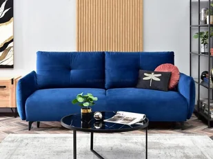 cechy do spania codziennego, sprężyna falista, z poduchami, pojemnik na pościel Kolorystyka kolor korpusu: granatowy kolor nóżek: czarny przeznaczenie salon, lokal usługowy, pokój dziecka, biuro styl wnętrzarski nowoczesny, glamour, współczesny Wymiary i waga długość: 95 cm szerokość: 225 cm wysokość: