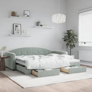 vidaXL Sofa rozsuwana z szufladami, jasnoszara, 90x200 cm, aksamit