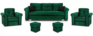Zestaw wypoczynkowy do salonu Merida sprawi, że Twoi goście oniemieją z zachwytu. Zestaw Merida składa się z trzyosobowej rozkładanej kanapy, dwóch foteli oraz dwóch otwieranych puf. Już po przekroczeniu salonu Twoi goście zobaczą piękny, elegancki i spójny design mebli wypoczynkowych. Ozdobna lamówka to mały detal, ale nadaje uroku całemu kompletowi.