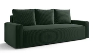 Uniwersalny design – dopasujesz go zarówno do aranżacji jasnych, naturalnych, jak i bardziej wyrazistych, kontrastowych. Gładkie przejście do funkcji spania – powierzchnia po rozłożeniu jest równa i całkowicie płaska, co znacząco zwiększa komfort nocnego odpoczynku. Materiały, które pracują na Twój komfort Wysokiej jakości, miękka tkanina Poso przypominająca sztruks o bardzo wyrazistej, prążkowanej strukturze, która jest ciepła w dotyku i trójwymiarowa; cechuje się odpornością na mechacenie, płowienie i ścieranie - do 35 000 cykli w teście Martindale. Sprężyna falista + pianka T30/45 – zapewniające komfort, sprężystość i trwałość Konstrukcja wykonana z wysokogatunkowej płyty meblowej gwarantuje stabilność i trwałość przez długie lata. Wymiary: Szerokość całkowita: