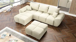 NAROŻNIK HONEY Z DUŻĄ PUFĄ TAPICEROWANĄ - UROCZE I PRZYTULNE CENTRUM TWOJEGO SALONUW narożniku Honey wyróżnia się siedzisko oraz otomana pokryta pikowaniem kształtem przypominającym plastry miodu lub tofelki czekolady. Niecodzienna forma pikowania narożnika przyciąga wzrok, a pomimo licznych wciągów rogówka jest niezwykle wygodna podczas siedzenia. Narożnik Honey został wykonany na solidnym stelażu z ramą drewnianą, do której zamocowane zostały sprężyny faliste. O komfort Twojego wypoczynku zadba Pianka PUR T-30, która dopasuje się do ciała, a wspomniane sprężyny faliste zadbają o sprężystość powierzchni spania. Cechy produktu Narożnik rozkładany Honey LGłęboko pikowane wciągi - Nowoczesny design, który przyciąga wzrokSzkielet wykonany z płyty meblowej wzmocniony litym drewnem - Rama drewniana, na której zamocowano sprężyny faliste to solidny materiał o wysokiej wytrzymałości.