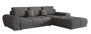 Dlaczego warto wybrać narożnik Lavenzo? Unikalny design – masywna, a zarazem miękka forma z obłymi podłokietnikami przyciąga spojrzenia i nadaje wnętrzu wyjątkowego charakteru. Wysoki komfort użytkowania – szerokie siedziska, duże poduchy i dodatkowe jaśki gwarantują wygodę podczas spotkań, odpoczynku i drzemek. Funkcja spania – w prosty sposób narożnik zamienia się w wygodne łóżko, oferując przestronną i równą powierzchnię spania. Praktyczny pojemnik – ukryty schowek pozwala na przechowywanie pościeli, koców czy poduszek, pomagając utrzymać porządek w salonie. Materiały, które pracują na Twój komfort Tkanina - wysokogatunkowa tkanina o strukturze plecionki, odporna na uszkodzenia mechaniczne i łatwa w codziennej pielęgnacji potwierdzona testem Martindale’a.