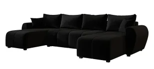 Czarny welurowy narożnik U z funkcją spania W6-D92
