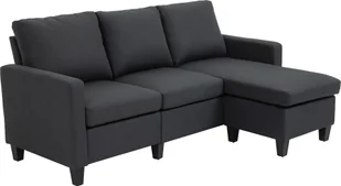 Ciemnoszary; - Materiał: len, pianka, ABS, drewno sosnowe; - Wymiary całkowite: 197W x 139D x 91H cm; - Wymiary sofy dwuosobowej: 117W x 50,5D x 48H cm; - Wymiary szezlonga: 58W x 102D x 48H cm; - Nośność: