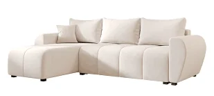 Narożnik rozkładany Velmores 4X to esencja stylu i wygody, stworzona dla osób, które cenią sobie funkcjonalność w eleganckiej oprawie. Jego miękkie linie i zaokrąglone boki sprawiają, że prezentuje się lekko i nowocześnie, stając się wyjątkową ozdobą salonu. Dzięki dużym poduszkom zapewnia komfort codziennego odpoczynku, a przemyślana konstrukcja gwarantuje, że czas spędzony na nim zawsze będzie przyjemnością. Funkcja spania pozwala w kilka chwil zamienić narożnik w wygodne łóżko, idealne na co dzień lub podczas wizyty gości. Dodatkowo narożnik wyposażono w praktyczny pojemnik na pościel, dzięki czemu utrzymanie porządku w salonie staje się dużo prostsze.