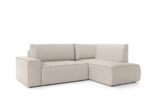 Narożnik fiord l poso 100 beżowy prawy to wygodny i minimalistyczny mebel do salonu, który zapewnia ponadczasową i uniwersalną kolorystykę. Powyższy narożnik w kształcie litery l dedykowany jest między innymi aranżacjom nowoczesnym i skandynawskim. Mebel wypoczynkowy beżowy pokrywa przyjemna w dotyku tkanina sztruksowa o charakterystycznej strukturze uwypuklonych linii. Trzyosobowy i prawostronny model mierzy 238 cm szerokości, 85 cm wysokości oraz 193 cm głębokości. Narożnik wyposażony w rozkł