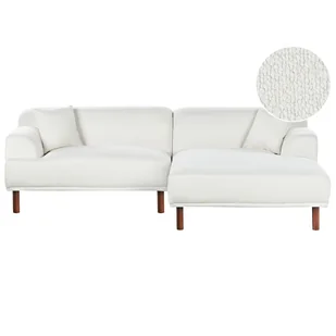 głębokość 159 cmKolor BiałyKształt Litera LLiczba osób 3Materiał boucleMateriał nóg DrewnoStronność LewostronnySzerokość 241 cmWysokość 82 cm