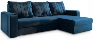 Przestronny narożnik LOTTA W łatwej w pielęgnacji tkaninie welurowej, Wymiary 258x212cm, Idealny dla rodzin, Z praktyczną podstawą do spania i nowoczesnym designem Układ po prawej stronie Kolor: NIEBIESKI