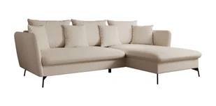 Narożnik viton moly 02 beżowy prawy to wygodne, stylowe i funkcjonalne rozwiązanie do salonu, które zachwyci zarówno miłośników nowoczesnego designu, jak również zwolenników wygody. Trzyosobowy narożnik łączy elegancję z prostotą. Mebel wypoczynkowy beżowy charakteryzuje się ponadczasową, przytulną i uniwersalną barwą. Jasne siedzisko, który pokrywa tkanina o przyjemnej w dotyku strukturze, kontrastuje z metalowym stelażem w czarnym odcieniu. Minimalistyczny kształt smukłych nóg sprawia, że meb