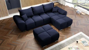 NIEBIESKI NAROŻNIK DO SALONU ROZKŁADANY FUNKCJA SPANIA HONEY L + DUŻA PUFA Narożnik rozkładany do salonu Honey to połączenie funkcjonalności z nowoczesnym i estetycznym designem. Rogówka do salonu Honey to idealny mebel dla osób, którym zależy na funkcjonalnym meblu, który również zachwyci swoim wyglądem. W narożniku z funkcją spania Honey wyróżnia się siedzisko oraz otomana pokryta pikowaniem kształtem przypominającym plastry miodu lub tofelki czekolady. Niecodzienna forma pikowania narożnika przyciąga wzrok, a pomimo licznych wciągów rogówka jest niezwykle wygodna zarówno podczas siedzenia jak i spania. Funkcjonalny narożnik rozkładany został wyposażony w automat DL, dzięki któremu z łatwością przekształcisz rogówkę w wygodne łóżko o powierzchni spania 130x220 cm.