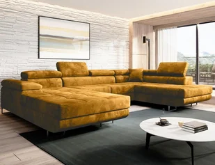 Narożnik w kształcie litery U MODERNO z welurową funkcją spania "Varberg" 72x345x205cm, prawy, musztardowy