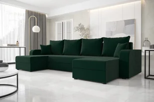 Sofa rozkładana Hortenzie U jest bardzo popularna ze względu na swój prosty design. Sofa posiada schowek i mechanizm rozkładania. Dzięki temu można ją w jednej chwili rozłożyć w łóżko do okazjonalnego spania. W zestawie znajdują się również duże poduszki ze zdejmowanym pokrowcem zapinanym na zamek błyskawiczny. Wymiary: szerokość: 313 cmwysokość:
