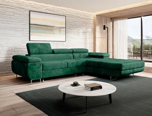 Tkanina zastosowana do produkcji mebla jest hydrofobowa, co oznacza, że jest odporna na wilgoć, co zapewnia jego dłuższą żywotność i ułatwia czyszczenie. Narożnik ten został zaprojektowany w sposób bardzo funkcjonalny, z myślą o użytkownikach, którzy cenią sobie komfort i wygodę. Jego nowoczesny wygląd sprawia, że będzie on idealnym meblem do nowoczesnych wnętrz, ale również będzie się dobrze komponował z innymi stylami. komfortowa funkcja spania duży pojemnik na pościel otwierany automatycznie wspomaganie rozkładania - automat typu "Delfin" sprężyny faliste modny design do wyboru lewy lub prawy wysokiej jakości pianka T30 mebel wolno stojący (tył tapicerowany tkaniną) metalowe ozdobne nóżki 9 cm mocna łatwoczyszcząca, hydrofobowa tkanina welur (monolith) regulowane zagłówki szeroka gama kolorystyczna