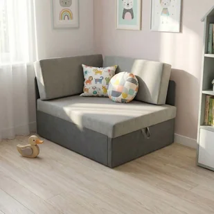 Sofa rozkładana narożna dla dzieci z funkcją spania Kubuś grafit/szary