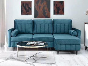Beliani Narożnik welurowy lewostronny rozkładany niebieski VADSO 167108
