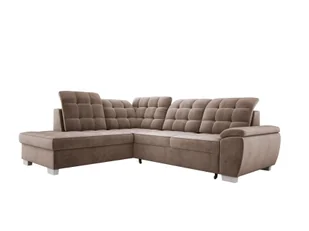 Narożnik LOTTA w tkaninie SALVADOR Elegancki design: Narożnik LOTTA w wysokiej jakości tkaninie SALVADOR zachwyca oryginalnym pikowaniem i delikatnymi zaokrągleniami, które dodają lekkości i stylu. Wszechstronna funkcja spania: jednym prostym ruchem sofa przekształca się w pełnoprawne łóżko o dużej powierzchni spania 186 x 125 cm, idealne dla niespodziewanych gości. Praktyczna przestrzeń do przechowywania: