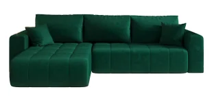 Uniwersalny design – neutralna, geometryczna forma łatwo wpisuje się w różnorodne style wnętrz – od skandynawskiego po nowoczesny. Miękka, elegancka tkanina obiciowa – przyjemna w dotyku, a przy tym łatwa w utrzymaniu czystości. Materiały, które pracują na Twój komfort Gęsta i aksamitna tkanina obiciowa typu velvet posiadająca bardzo dobrą odporność na ścieranie (do 100 000 cykli - test Martindale). Wypełnienie siedziska stanowi połączenie pianki T30 i sprężyny falistej, co zapewnia sprężystość oraz wysoki komfort użytkowania. Narożnik posiada uniwersalną stronę, dzięki czemu z łatwością dopasujesz go do układu swojego wnętrza.