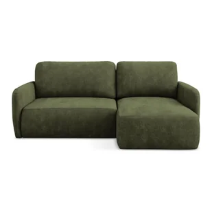 Zielony narożnik rozkładany z tkaniny szenilowej ze schowkiem (prawostronny/z szezlongiem) Lilo – Makamii