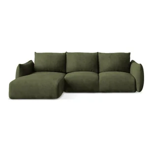 Zielony rozkładany narożnik z tkaniny szenilowej (lewostronny/z szezlongiem) Leila – Makamii