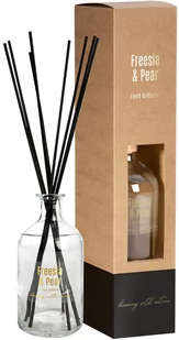Dyfuzor zapachowy do 12 tygodni BISPOL FREZJA - GRUSZKA 230ml Dyfuzor zapachowy z patyczkami o zapachu frezjii i gruszki o pojemności 230ml i trwałości zapachu do 12 tygodni BISPOL. Aromatyczny i trwały zapach, długi czas działania oraz elegancka butelka tworzą niezapomniany klimat dzięki czemu sprawiają, że dyfuzory zapachowe idealnie sprawdzą się jako element dekoracyjny domu, hotelu, biura, sali bankietowej, salonu masażu, gabinetu kosmetycznego lub innej przestrzeni publicznej. Dyfuzory występują w kilku wariantach zapachowych. Firma BISPOL jako jeden z wiodących producentów zniczy, wkładów do zniczy, podgrzewaczy i świec posiada szereg atestów i certyfikatów takich jak m. in: BRC CP RAL RSPO PZH które gwarantują, że wyprodukowany wyrób jest najwyższej jakości, spełnia normy bezpieczeństwa oraz nie kopci podczas palenia.
