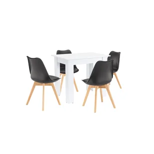 Amina 4+1 étkező garnitúra fekete-fehérElegáns étkezőgarnitúra modern otthonokbaA Leziter márka Amina 4+1 étkezőgarnitúrája tökéletes választás modern lakásokba, éttermekbe és stílusos irodai konyhákba egyaránt. A garnitúra 4 db székből és 1 db asztalból, a népszerű Silla étkezőszék és a Yorki standard étkezőasztal harmonikus kombinációjából áll, egyesítve a funkcionalitást az időtlen dizájnnal. Az étkezőszett ideális 4 fő leültetésére és méretei miatt praktikusan elhelyezhető kisebb helyiségekbe is. Silla étkezőszék - A modern kényelem új definíciójaÜlőfelület: Prémium polipropilén, könnyen tisztítható felülettelLábak: