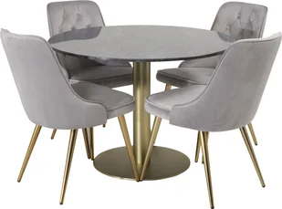 Zestaw EstelleØ106BLBR stół do jadalni czarny, marmur i 4 krzesła Velvet Deluxe welur jasnoszary, mosiężny dekor to zestaw stołów do jadalni w kolorze, który wniesie do Twojego domu zarówno styl, jak i funkcjonalność. Zestaw stół EstelleØ106BLBR czarny, marmur i 4 krzesła Velvet Deluxe welur jasnoszary, mosiężny dekor. Stół Estelle 60-19931-568. Øcm 106. stół cm: dł. 106 x gł. 106 x wys. 75. stół: marmur, stal. Krzesło Velvet Deluxe 60-19935-785.