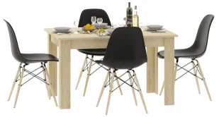 Marzysz o pięknym i przytulnym wnętrzu, nie narażając się na wysokie wydatki? Voilà! Przedstawiamy Ci zestaw Difo marki Elior - połączenie funkcjonalności i przytulnego stylu, które tworzy przestrzeń do wspólnych posiłków i chwil relaksu. Minimalistyczny design stołu i charakterystyczne krzesła z drewnianymi nóżkami wprowadzą do wnętrza atmosferę skandynawskiego ciepła. Poznaj go bliżej i przekonaj się, ile dobrego zyskasz dzięki jego obecności! Skandynawska harmonia w Twoim domu: minimalistyczny stół z prostymi liniami podkreśla nowoczesną estetykę zestawu, będąc jednocześnie wyjątkowo funkcjonalnym centrum przestrzenikrzesła z drewnianymi nóżkami i stalowymi elementami łączącymi, zapewniają stabilność oraz są wyrazem skandynawskiego designusiedziska krzeseł zaprojektowane z myślą o komforcie łączą estetykę z funkcjonalnością, tworząc idealne miejsce do siedzeniastół z krzesłami sprawdzi się w jadalni, kuchni i salonie, wprowadzając do pomieszczenia kameralną, przytulną atmosferę Standardy premium - definicja doskonałości: stół został wykonany z laminowanej płyty meblowej o podwyższonej trwałości i gęstości do 684 kg/m3, co zapewnia odporność na uszkodzenia mechanicznesolidny blat o grubości 18 mm gwarantuje długotrwałe użytkowanie bez obawy o uszkodzenia i jest łatwy w utrzymaniu w czystościkrzesła z tworzywa polipropylenowego Balter Premium o klasie higieny E1 zapewniają wytrzymałość na nacisk od 70 do 100 MPa i gęstość 900–910 kg/m³ co jest gwarancją ich trwałości i stabilnościdrewniane nóżki wzmocnione stalowymi elementami nie tylko podkreślają skandynawski sznyt, ale również gwarantują stabilność i bezpieczeństwo użytkowania Zestaw dostępny jest w wielu wersjach kolorystycznych.