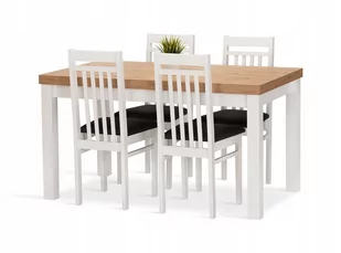 Oferujemy Państwu wyjątkowy zestaw POLA- czyli komplet do jadalni składający się ze stołu i 4 krzeseł w nowoczesnej odsłonie. Wysoka jakość i precyzja wykonania to tylko nieliczne jego atuty. Komplet jest bardzo wygodny w użytkowaniu oraz komfortowy. STANDARDOWE WYKONANIE ZESTAWU: Solidne i estetyczne wykonanie Nowoczesny design Meble do samodzielnego montażu - dołączona czytelna instrukcja w języku Polskim oraz niezbędne akcesoria Blat wykonany z płyty wiórowej laminowanej wykończony na kolor dąb artisan Szkielet i nogi wykonane z drewna bukowego i polakierowane pod kolor blatu jak i krzeseł z naszej oferty Krzesła wykonane z drewna bukowego barwionego na kolor biały WYMIARY STOŁU: