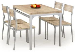 To dlatego cieszy się on powodzeniem wśród osób lubiących ciekawe rozwiązania. Użyta do blatu stołu oraz krzeseł płyta laminowana MDF została uszlachetniona i pokryta cienkimi filmami melaminowymi. Posiada także specjalne włókna ułożone różnkokierunkowo o strukturze sinusoidalnej, co zapewnia nadanie jej cech jakościowych oraz wytrzymałościowych. Designerski blat wykonany został ze specjalnej płyty komórkowej, której główną zaletą jest redukcja ciężaru bez utraty stabilności oraz innych funkcji konstrukcyjnych. Nowy zestaw jest z pewnością praktyczny i elegancki.