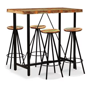 Stolik barowy i stołki zostały wykonane z litego drewna odzyskanego, które posiada cechy charakterystyczne różnych gatunków drewna, takich jak drewno tekowe, mango, akacja itd. Drewno odzyskane jest solidne, mocne, wytrzymałe i piękne. Ślady zużycia nadają każdemu meblowi wyjątkowy wygląd, a stalowe nogi podkreślają spektakularne wykonanie w industrialnym stylu. Każdy etap procesu produkcji wykonywany jest z najwyższą dbałością, zarówno łączenie, polerowanie, malowanie, jak i lakierowanie.
