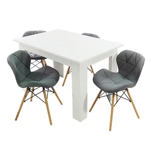 Wyjątkowo elegancki i niezwykle praktyczny zestaw stołowy sprawdzi się w klasycznych oraz nowoczesnych kuchniach lub jadalniach. Prostota wykonania to uniwersalna cecha, dzięki którym zestaw z powodzeniem sprawdzi się w różnych aranżacjach. Cechą wyróżniającą zestawu jest solidne i trwałe wykonanie. Zestaw składa się z prostokątnego stołu i 4 solidnych krzeseł. Stół wykonany jest z płyty laminowanej.