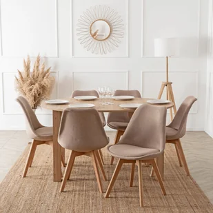 Zestaw Stół Rozkładany HARRY Dąb Artisan i 6 Krzeseł NEVEL Beżowych to połączenie stylu i wygody. Okrągły stół z możliwością powiększenia blatu oraz sześć eleganckich, beżowych krzeseł tworzą harmonijną przestrzeń idealną na codzienne posiłki i spotkania w gronie bliskich.