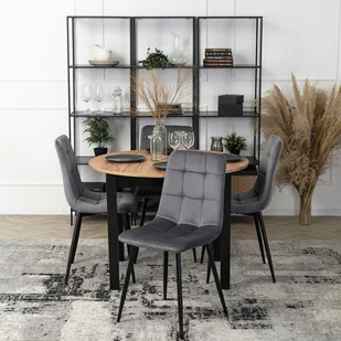 - Stół okrągły rozkładany JAMES w kolorze dąb craft z czarnymi nogami