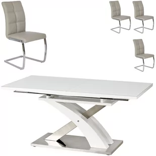 Kombinacja: Ilość krzeseł: 6; Kolorystyka krzeseł: Jasny Popiel Eco Skay; Kolorystyka stołu: Czarny / Biały; Cechy produktu:
