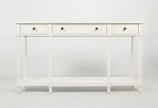 Stolik konsolowy EMILIA zachwyci wszystkich miłośników rustykalnych salonów lub przedpokojów. Stylowy stolik boczny zawiera 3 szuflady i półkę. Wymiary: szerokość: 152,5 cmwysokość: 86,5 cmgłębokość: 35,5 cm Pozostałe parametry i cechy: