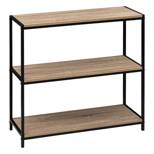 Konsola industrialna z trzema półkami, drewno i metal, elegancki stolik do przedpokoju, salonu i biura