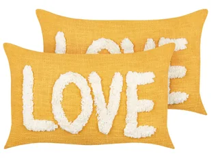 2 bawełniane poduszki dekoracyjne 30 x 50 cm żółte LOVE Rozjaśnij swoją przestrzeń z tym zestawem dekoracyjnym prostokątnych poduszek pasujących zarówno do s...