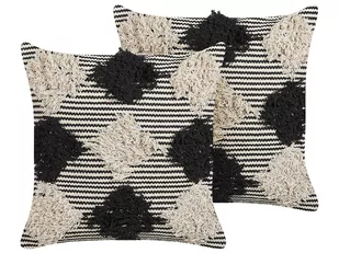 Ręcznie wykonane poduszki ozdobne w stylu boho. Dzięki unikalnej fakturze i ponadczasowej kolorystyce, ten zestaw poduszek z wypełnieniem pasuje do każdego nowoczesnego lub tradycyjnego wnętrza. Na ręcznie tkanych bawełnianych poszewkach znajduje się geometryczny wzór w beżowe i czarne romby, który wprowadzi do twojego domu nutę stylu boho. Dla wygody użytkowania, z tyłu każdej poduszki umieszczono zapięcie na zamek błyskawiczny. Szczegóły: Typ produktu: