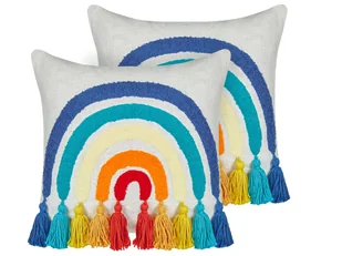 2 bawełniane poduszki dekoracyjne motyw tęczy 45 x 45 cm wielokolorowe DORSTENIA