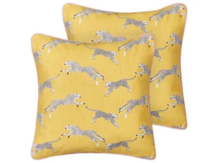 2 bawełniane poduszki dekoracyjne w gepardy 45 x 45 cm żółte ARALES