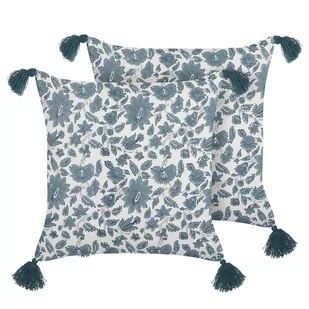 Poduszki z frędzlami. Poduszka z uroczym motywem przeplatających się kwiatów i liści będzie wspaniałą ozdobą każdej sofy, fotela czy łóżka. Ten komplet poduch nie tylko będzie fantastycznie wyglądać, ale dzięki gęstemu wypełnieniu zwiększy twoje poczucie komfortu. Puszyste frędzle na rogach i unikalny nadruk ręcznie stemplowany sprawiają, że jest to wspaniały dodatek do każdego wnętrza. Szczegóły: Typ produktu: